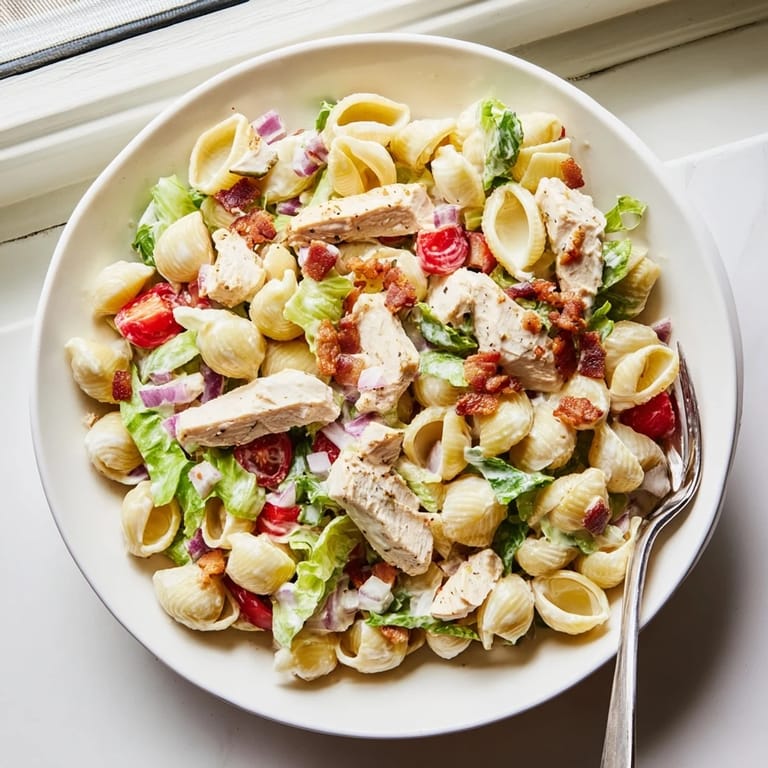 - Medium pasta shells: The curves catch bits of bacon and dressing in every bite, and they hold up beautifully after chilling without becoming mushy