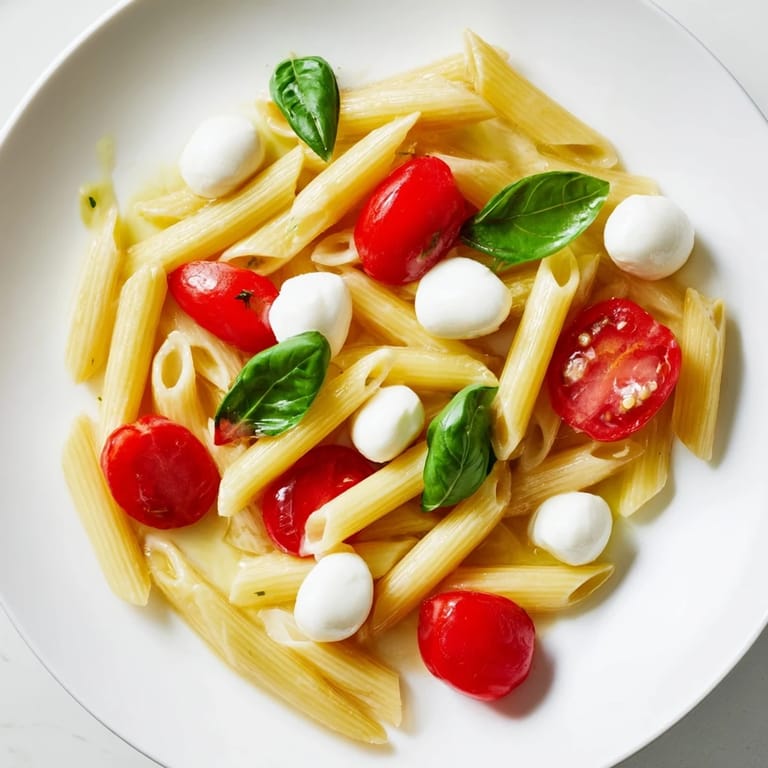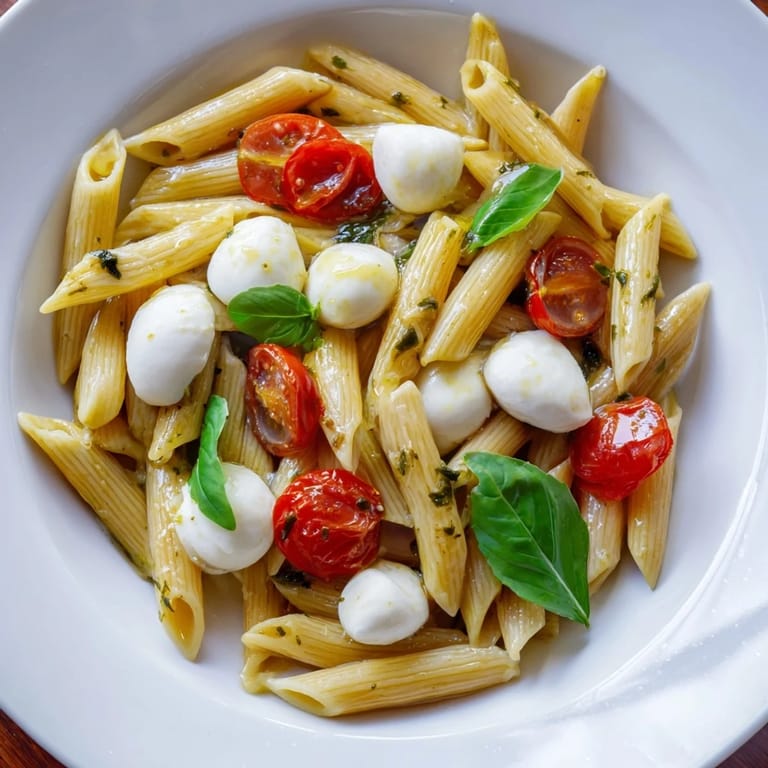 Save My neighbor Maria handed me a bowl of this over the fence one August afternoon, and I ate it standing in the garden, barefoot in the grass. It was the kind of simple that makes you forget complicated recipes exist. The tomatoes were warm from her windowsill, the basil still smelled like sunlight, and the mozzarella melted just slightly into the pasta. I asked for the recipe, and she laughed because there really wasn't one.