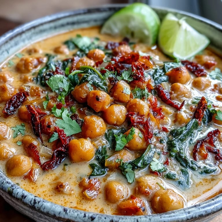 Save There's something about the smell of cumin and coriander hitting hot oil that makes you feel like you're cooking something worthwhile. I discovered this chickpea curry on a rainy Tuesday when I had nothing but pantry staples and a craving for something warm that didn't require planning ahead. Twenty-five minutes later, I was ladling this creamy, fragrant sauce over rice, and my kitchen smelled like a proper Indian restaurant. It became my go-to weeknight dinner, the kind of meal that feels indulgent but somehow requires less effort than ordering takeout.