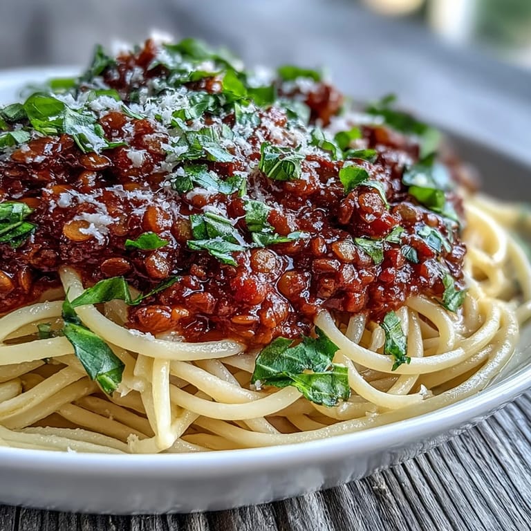 Save My neighbor stopped by on a rainy Tuesday with a bag of brown lentils and a tired smile, mentioning she'd been craving something warm but couldn't face another chicken dish. We ended up in the kitchen together, and I threw together what became this lentil bolognese without thinking too hard about it. The sauce simmered while we talked, filling the apartment with the smell of tomatoes and herbs, and by the time we sat down with pasta, she was already planning to make it again. That moment taught me that sometimes the best meals aren't the ones you plan, they're the ones that happen when you listen to what someone actually wants to eat.